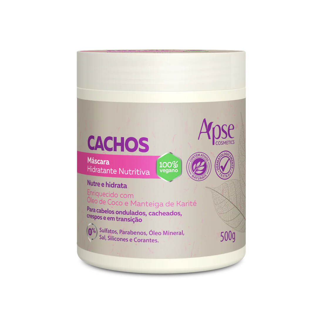 A Máscara Hidratante Nutritiva Cachos da Apice proporciona nutrição profunda, definição e brilho aos cabelos ondulados, cacheados, crespos e em transição. Sua fórmula rica em Óleo de Coco e Manteiga de Karité é 100% vegana, liberada para Co-Wash e livre de sulfatos, parabenos, silicones, sal e óleo mineral.